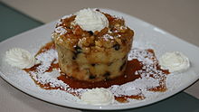 In other languages, its name is a translation of "bread pudding" or even just "pudding", for example "pudín" or "budín".[1][2] In the Philippines, banana bread pudding is popular. In Mexico, there is a similar dish eaten during Lent called capirotada.[3][4] In the United Kingdom, it is said to be a moist version of Nelson Cake, hence the nickname, "Wet Nelly".[5][6]