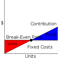 The break-even point (BEP) in economics, business—and specifically cost accounting—is the point at which total cost and total revenue are equal, i.e. "even". There is no net loss or gain, and one has "broken even", though opportunity costs have been paid and capital has received the risk-adjusted, expected return. In short, all costs that must be paid are paid, and there is neither profit or loss.[1][2]
