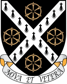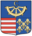 Coat of Arms of Kremnica in Slovakia displaying the broken Catherine wheel