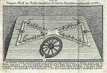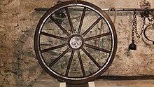 The breaking wheel or execution wheel, also known as the Catherine wheel or simply the Wheel, was a torture method used for public execution primarily in Europe from antiquity through the Middle Ages into the early modern period by breaking the bones of a criminal or bludgeoning them to death. The practice was abolished in Bavaria in 1813 and in the Electorate of Hesse in 1836: the last known execution by the "Wheel" took place in Prussia in 1841. In the Holy Roman Empire it was a "mirror punishment" for highwaymen and street thieves, and was set out in the Sachsenspiegel for murder, and arson that resulted in fatalities.[1]