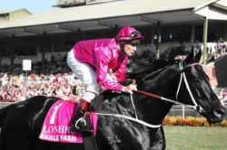 The breastgirth is made of strong elastic, and runs from either the D-rings of the saddle, or is attached to a loop that runs around the saddle's stirrup bars. Although similar to the breastcollar, there is no wither strap. Breastcollars are usually seen in show jumping and eventing (usually on the cross-country phase). They are desirable because they tend to be less-restrictive to the shoulders, so the horse is better able to pick up his front legs and fold over a jump.