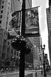 The following season, Seabrook became an integral part of a young and rejuvenated Blackhawks team that made the Stanley Cup playoffs for the first time in seven years the following season in 2009. He scored 11 points in 17 post-season games as the Blackhawks made it to the Western Conference Finals, where they were defeated by the Detroit Red Wings. On March 17, 2010, Seabrook was knocked out by a high hit from James Wisniewski, a former teammate. Seabrook missed the next two games, while Wisniewski was ultimately suspended for eight games.[7] On June 9, 2010, the Blackhawks won the Stanley Cup after defeating the Philadelphia Flyers 4–3 in overtime.