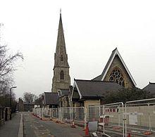 Built in 1868 from Kentish ragstone, Saint Paul's Church is one of Brentford's two current Anglican parish churches, and a distinct landmark. Its spire is clearly visible. The architect was H. Francis. In 1959 and 1961 the parishes of the nearby churches of Saint George and Saint Lawrence were amalgamated with Saint Paul.[23]