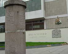 New Brentford was first described as the county town of Middlesex in 1789, on the basis that it was the location of elections of knights for the shire (or Members of Parliament) from 1701.[13][14] In 1795 New Brentford (as it was then) was "considered as the county-town; but there is no town-hall or other public building" causing confusion that remains to this day.[15]