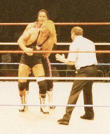 In 1986, Hart began his first singles program with Ricky Steamboat, and in a singles match originally planned for WrestleMania 2,[41] he lost to Steamboat at the Boston Garden on March 8, 1986, which would be included on Hart's 2005 DVD as one of his all-time favourite matches.[27] At WrestleMania 2, Hart instead participated in a 20-man battle royal which was eventually won by André the Giant.[42] He lost to Steamboat again on the July 28, 1986 episode of Prime Time Wrestling.[43] Hart headlined his first televised WWF card when he beat Ray Rougeau, of The Fabulous Rougeau Brothers, in the main event of the November 3, 1986 episode of Prime Time Wrestling.[43]