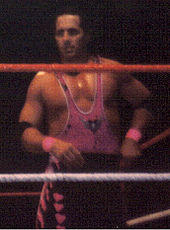 Hart was asked to start out in the WWF as a singles wrestler with a cowboy gimmick but refused, stating that where he comes from "if you called yourself a cowboy, you'd better be one."[35] He made his televised WWF debut on August 29, 1984, in a tag team match where he teamed with the Dynamite Kid.[36] On September 11, in Poughkeepsie, New York, Hart defeated Aldo Marino in his televised debut singles match, which aired on the September 29 episode of Superstars of Wrestling. In 1985, after acquiring the nickname of "Hit Man",[6] he requested to join Jimmy Hart's heel stable, The Hart Foundation, which included brother-in-law Jim Neidhart. Bret began to increasingly team with Neidhart,[27] in order to build the promotion's tag team division. The "Hart Foundation" name then became exclusive to Bret, Neidhart and manager Jimmy Hart, due to the similar family names of both team members and their manager.[37] Bret's agile, technical style – which earned him the moniker "The Excellence of Execution" (coined by Gorilla Monsoon)[6][38] – created a contrast with his partner Neidhart's strength and brawling skills. During this time, Hart began wearing his signature[39] sunglasses, initially to conceal his nervousness during promos. Hart considers his microphone work to have been a weakness throughout his early career.[27][40]