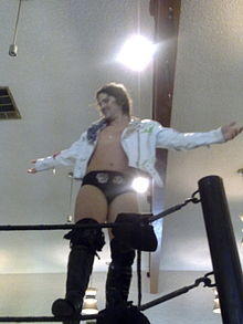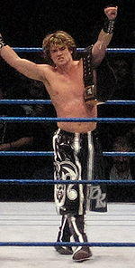 On February 23, 2002, Kendrick wrestled on the premiere show of Ring of Honor (ROH), winning the match to gain an ROH contract.[18] While in ROH, Kendrick competed in several other promotions such as Heartland Wrestling Association and All Pro Wrestling, before leaving for Japan in June to compete in Pro Wrestling Zero-One (Zero-One).[2] There, he wrestled under the ring name Leonardo Spanky, a gimmick proposed by Shinya Hashimoto due to Kendrick's resemblance to Leonardo DiCaprio.[19] On June 29, he became the first International Junior Heavyweight Champion in company history.[8][20] He dropped the title to Low Ki a few months later.[21]