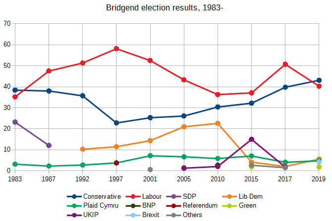 - ^ "Bridgend Parliamentary constituency". BBC News. Retrieved 13 December 2019.