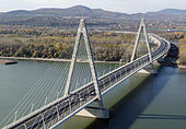 The final structure spawns over two branches of the Danube with Szentendre Island in the middle where for environmental protection there is no exit. The eastern part of the bridge is cable stayed and, as it is on the main branch, that part allows safe passage for international river traffic, for all vessels that are currently authorized to pass through Budapest because of their manageability.