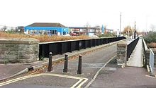 The railway took over the tramway in 1859 and rebuilt it for locomotive operation in 1867. In March 1871 it was extended across the river to Bridgwater Docks, which formed the entrance to the Bridgwater and Taunton Canal and was owned by the railway company. The bridge was of an unusual design that had to move to allow ships to pass upstream at high tide; first part of the bridge was rolled aside and then the remaining section was pulled clear into the space vacated by the first.