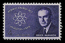 Brien McMahon, born James O'Brien McMahon (October 6, 1903 – July 28, 1952) was an American lawyer and politician who served in the United States Senate (as a Democrat from Connecticut) from 1945 to 1952. McMahon was a major figure in the establishment of the Atomic Energy Commission, through his authorship of the Atomic Energy Act of 1946 (the McMahon Act).