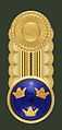 - ^ The shoulder straps/casings are covered by a 45 mm gallon m/51. A brigadier general attaches one star M/1860. The distance between the star and the command badge m/39-60 (chefsgruppsemblem m/39-60) must be 5 mm. Rank insignia is worn on both shoulder straps for tunic, jacket and coat m/87 gray and mess jacket m/86. Rank insignia is worn on casings on m/87 (gray) to blue wool sweater m/87(S), trench coat m/84, sea coat 93, raincoat m/87 and white shirt m/78 (gray shirt m/87). The insignias are made of gold-colored metal/embroidery.[11]