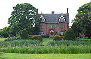 Radbrook Cottage on Long Lane in Radmore Green is a timber-framed black-and-white cottage which dates from 1617.[24] A black-and-white cottage on Kidderton Lane dates originally from the late 17th century.[25] Both cottages are listed at grade II. Brindley Lea Hall (SJ590535) is a brown-brick farmhouse which was built around 1860 as part of the Tollemache estate; it is also grade II listed.[26] The present house was built on the site of a moated house, believed to be the seat of the Allen family during the 17th century.[21] The former Wesleyan Methodist chapel in Brindley village dates from 1873.[1]