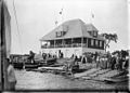 By 1904, the trolley company had built a wide pier 1,000 feet long out into the river. Along the east side, there were cottages, and the Boat club house. Along the south side, the land between the road and the lake has been turned into a park, with pavilions and bath houses. The beach was ideal for bathing, since people could wade out almost to the end of the pier without danger. The village, with its two churches and neat cottages, was one of Ottawa's most fashionable suburbs in 1904. Justice Mosgrove had a 35-acre grape farm, not far from Britannia Park, on the river.[4]