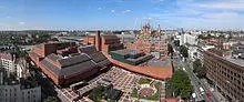 Initial plans for the British Library required demolition of an integral part of Bloomsbury – a seven-acre swathe of streets immediately in front of the Museum, so that the Library could be situated directly opposite. After a long and hard-fought campaign led by Dr George Wagner, this decision was overturned and the library was instead constructed by John Laing plc[18] on a site at Euston Road next to St Pancras railway station.[19]