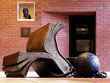 Sitting on History, with its ball and chain, refers to the book as the captor of information which we cannot escape