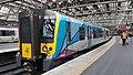 Ten additional four-car units were introduced in 2013 for First TransPennine Express to coincide with the completion of the electrification of the eastern section of the Manchester to Liverpool via Newton-le-Willows line.[4][15] These units were used on services between Manchester and Edinburgh / Glasgow, while the displaced Class 185s have remained with TransPennine to enhance capacity on other routes.[15] The new trains had a revised specification allowing 110 mph (177 km/h) running, originally with an intercity-style interior described as similar to the existing 185s.[4][15]