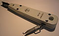 As previously mentioned the actual connections are made using Insulation-displacement connectors (IDC). A punch down tool is required to do this and two sorts are available. One is of plastic construction and only intended for occasional use. The other is a professional tool used by installers, which is a spring loaded push down tool that both inserts the wire and trims it in one action : an example is shown in the photograph. It also comes with a tool for removing wires from sockets. From Q3 2016, Openreach started using a new, "toolless" version of the demarcation socket—the NTE5C—which does not require an IDC tool to make the connections.