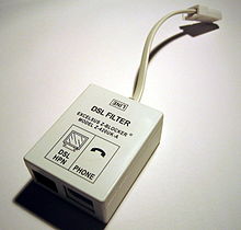 In order to use broadband Internet services simultaneously with voice telephony, it is necessary to use a DSL filter. This is a low pass filter in line with the phone outlet. This prevents high frequency data noise from affecting the lower frequency voice bandwidth and it also prevents the low impedance of the connected phone from attenuating or modulating the high speed DSL data Path. Enough bandwidth is retained for voice telephony and the majority is used for high speed data.