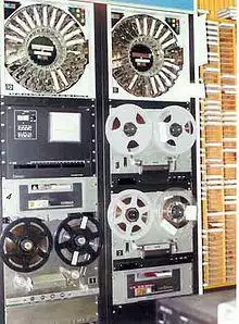A different technology appeared in 1980 with the analog recorders made by Solidyne, which used a computer-controlled tape positioning system. Four GMS 204 units were controlled from a 6809 microprocessor, with the program stored in a solid-state plug-in memory module. This system has a limited programming time of about eight hours.