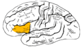 Additionally, The pars triangularis was implicated in semantic processing of language. By measuring the response of the brain by electroencephalography as it responded to different sentence types (those with or without semantic errors), Maess et al. demonstrated a time-lag in the comprehension of erroneous sentences. To understand this one would only need to imagine a person being told something they did not understand. They would pause and take a moment to process the information. Furthermore, these researchers demonstrated a characteristic processing pattern called an "N400", which refers to a negativity that appears in the pars triangularis about 400 ms after the syntactic mismatch is presented.[9] However, the pars triangularis is likely to be only part of the network generating the N400 response in EEG since the magnetic counterpart N400m measured using MEG has been consistently localized to the superior temporal cortex.[10]