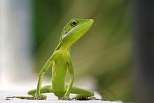 Bronchocela cristatella, also known as the green crested lizard, is a species of agamid lizard endemic to Southeast Asia.