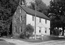 Brookeville served as a market town for the agriculture industry in the surrounding area. During the 19th century, Brookeville was home to several mills, the Brookeville Academy (initially a boys' school),[8] a post office, blacksmith's shop, St. Luke's Episcopal Church, Salem Methodist Protestant Church, and a number of shops.[9] Newlin's Mill, located on the west side of town, processed high-quality castor oil and ground limestone for plaster. Thomas Mill was located on the east side of town.[7] To transport goods more easily to markets in Washington, D.C., a prosperous farmer established a company in 1849 to build a toll road to connect Brookeville to the Seventh Street Pike. The turnpike was sold to the State of Maryland in 1914, and later became Georgia Avenue.[10]