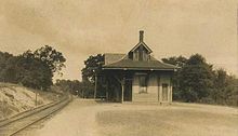 The town was renamed in 1798 at the suggestion of a leading citizen in town originally from Brookline, Massachusetts.[2] By 1859, when the population was 718, there were eight sawmills and one gristmill, as well as a sash and blind shop. In the earlier days of the town, Brookline was known throughout southern New Hampshire for producing lumber, charcoal and casks.[3] The Boston and Maine Railroad eventually branched into Brookline in 1892. The train station that served Brookline during the railroad's tenure in the town has since been renovated into a private residential home.[4] A large fraction of the area that was once railroad track is now New Hampshire Route 13.