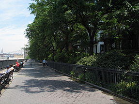 Starting in 2008, Brooklyn Bridge Park was built along the shoreline of the East River.[22] As of 2018 the park was 90% complete.[23] The Squibb Park Bridge was constructed in 2013 to provide access between the park and the rest of Brooklyn Heights, but had to be demolished in 2019 due to various structural issues.[24]