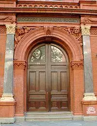 The center's headquarters building, on the corner of Pierrepoint and Clinton Streets, was built in 1878–81 and was designed by George B. Post in the Renaissance revival style. Post was selected as a result of a competition between 14 architects. The building's design utilizes terra cotta ornamentation made by the Perth Amboy Terra Cotta Company,[2] and has architectural sculptures by Olin Levi Warner,[17] including busts of Michelangelo, Beethoven, Gutenberg, Shakespeare, Columbus, Benjamin Franklin, a Viking and a Native American.[6]