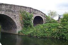 Broom Bridge (Irish: Droichead Broome),[1] also called Broome Bridge, and sometimes Brougham Bridge, is a bridge along Broombridge Road which crosses the Royal Canal in Cabra, Dublin, Ireland. Broome Bridge is named after William Broome, one of the directors of the Royal Canal company who lived nearby. It is famous for being the location where Sir William Rowan Hamilton first wrote down the fundamental formula for quaternions on 16 October 1843, which is to this day commemorated by a stone plaque on the northwest corner of the underside of the bridge. After being spoiled by the action of vandals and some visitors,[2] the plaque was moved to a different place, higher, under the railing of the bridge.