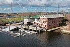 Brown Stadium, which was built in 1925 and is home to the football team, is located approximately a mile to the northeast of the main campus. Marston Boathouse, the home of the crew teams, lies on the Blackstone/Seekonk River, to the southeast of campus. Brown's Warren Alpert Medical School is situated in the historic Jewelry District of Providence, near the medical campus of Brown's teaching hospitals, Rhode Island Hospital, Women and Infants Hospital, and Hasbro Children's Hospital. Other university research facilities in the Jewelry District include the Laboratories for Molecular Medicine.