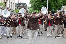 The Van Wickle Gates, dedicated on June 18, 1901, have a pair of smaller side gates that are open year-round, and a large central gate that is opened two days a year for Convocation and Commencement. At Convocation the gate opens inward to admit the procession of new students. At Commencement, the gate opens outward for the procession of graduates.[51] A Brown superstition is that students who walk through the central gate a second time prematurely will not graduate, although walking backward is said to cancel the hex. Members of the Brown University Band famously flout the superstition by walking through the gate three times too many, as they annually play their role in the Commencement parade.