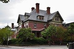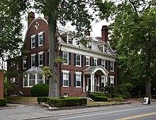 Presbyterian Lane is the present College Street. The eight-acre site had been purchased in two parcels by the corporation for £219, mainly from Moses Brown and John Brown, the parcels having "formed a part of the original home lots of their ancestor, Chad Brown, and of George Rickard, who bought them from the Indians." University Hall was known as "The College Edifice" until 1823; it was modelled on Nassau Hall at the College of New Jersey. Its construction was managed by the firm of Nicholas Brown and Company, which spent £2,844 in the first year building the College Edifice and the adjacent President's House.[27][28]