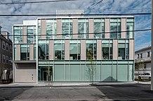 Adjacent to this older campus are, to the south, academic buildings and residential quadrangles, including Wriston, Keeney, and Gregorian quadrangles; to the east, Sciences Park occupying two city blocks; to the north, connected to Simmons Quadrangle by The Walk, academic and residential precincts, including the life sciences complex and the Pembroke Campus; and to the west, on the slope of College Hill, academic buildings, including List Art Center and the Hay and Rockefeller libraries. The perimeter of the old campus contains the university's four significant examples of Brutalist architecture, the John D. Rockefeller Jr. Library, the Sciences Library, the List Art Building, and the Graduate Center. Also on the slope of College Hill, contiguous with Brown, is the campus of the Rhode Island School of Design.