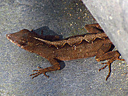 The brown anole (Anolis sagrei), also known commonly as the Bahaman anole or De la Sagra's anole,[1] is a species of lizard in the family Dactyloidae. The species is native to Cuba and the Bahamas. It has been widely introduced elsewhere, by being sold as a pet lizard, and is now found in Florida and as far north in the United States as southern Georgia, Texas, Louisiana, Mississippi, Alabama, Hawaii, and Southern California.[2][3][4] It has also been introduced to other Caribbean islands and Taiwan in Asia.