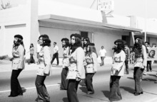 By 1969, 28 cities had Brown Beret chapters and established mostly in California but units were also established in El Paso, Albuquerque, Denver, Detroit, San Antonio, St. Paul, and Seattle.[11] The Brown Berets were involved in marches, anti-war protests, student-walkouts, and gained significant national media attention when they staged an invasion of the Catalina Islands near Los Angeles in August 1972.[12] Another important direct action was their mobilization of the East Los Angeles blowouts in 1968 where they acted as the security force for the thousands of protesting youth.