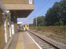 Broxbourne railway station is on the West Anglia Main Line serving the towns of Broxbourne and Hoddesdon in Hertfordshire, England. It is 17 miles 17 chains (27.7 km) down the line from London Liverpool Street and is situated between Cheshunt and Roydon. Its three-letter station code is BXB and it is in fare zone B.