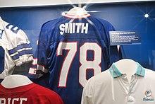 Bruce Bernard Smith (born June 18, 1963) is an American former professional football player who was a defensive end for the Buffalo Bills and the Washington Redskins of the National Football League (NFL). He was a member of the Buffalo Bills teams that played in four consecutive Super Bowls as AFC champions. The holder of the NFL career record for quarterback sacks with 200, Smith was enshrined in the Pro Football Hall of Fame in 2009, his first year of eligibility.[1] Smith was inducted into the College Football Hall of Fame in 2006.
