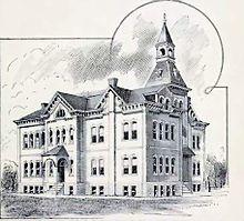 Schools in the Brunswick area date back to 1840, when a small one-room log "subscription" or private school was constructed. Following the Civil War, attention turned more toward public education, with the first public school opening in the town circa 1868.[13] A large three-story brick school was constructed in 1871 and served the community well into the early 20th century, being replaced by a new school in 1930–31. The present junior high / high school building used by Brunswick R-II school district was constructed in 1956–57. The most recent addition to the facilities is a new grade school constructed in 1991–1992.[6] In 1949 Missouri reorganized public education, with the state board of education consolidating or reorganizing many small rural schools into larger districts, this gave birth to the aforementioned Brunswick R-II district. The district, in student count, is the second largest in Chariton County, trailing Salisbury schools. Enrollment in all grades from 2006 to 2010 averaged 250 students.[14] The school colors are red and black. Their mascot is the Wildcat. Brunswick R-II participates in sports and other activities as a Class 1A school under guidelines from the Missouri State High School Activities Association.