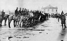 On the same night, a "well-dressed young man" appeared in a cage on the back of a lorry.[7] He used a megaphone to address the crowd and the cage itself bore slogans such as "We want free speech". Police dispersed the crowd and the young man was eventually freed and then arrested.[7] By June 1933, Brunswick residents and local council members were criticising the police action, and Councillor Wylie stated: "Without any discretion, mounted troopers drove men, women, and children off the footpaths in Sydney road into the path of traffic on Friday nights."[6]