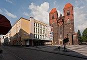 Some two hundred m south-west from the curia was the former location, on what was later to be called Mary's Hill (Góra Marii), of the Romanesque St. Mary's Church (Kościół Najświętszej Marii Panny). During the Reformation, the church was deconstructed, and its brickwork used for the construction of the town's fortifications. A sixteenth-century chronicle states it was "the first church", however, no more is known about the holy site. Historians believe the founder of the church may have been Bolesław I the Tall or Henry the Bearded. Around the peripheries of the settlement was the location of several hospital buildings.[11] Towards the route to Wrocław in the town's west was the location of the Hospital of the Holy Ghost (Świętego Ducha), used both to cure the town's dwellers and as an inn for travellers along the Wrocław-Opole route the town of Brzeg was located in the middle of, with an average walking distance between each town taking one day. The area around the Holy Ghost Hospital, present-day Moniuszko Square (Plac Moniuszki), was the location of a major market, positioned by the cross roads of the Wrocław–Nysa route, east of the Wrocławska Gate. By the end of the thirteenth century, the Duke of Brzeg possessed 10 shambles. The market is believed to be characteristic of other Silesian towns, commonly selling agricultural produce, namely bread, meat and shoes. Prior to the locality receiving its town charter in 1248 or 1250, the settlement had characteristics of a town and not of an ordinary fishing village, being referred to as "civitas" in an early Latin document, as exemplified by the existence of the curia, church and a major market, allowing the settlement to develop through the exchange of produce and barter.[11]