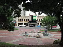 At the heart of Buckhead around the intersections of Lenox, Peachtree and Piedmont Roads, is a shopping district with more than 1,500 retail units where shoppers spend more than $3 billion a year.[30] In addition, Buckhead contains the highest concentration of upscale boutiques in the United States.[31] The majority are located at Lenox Square and Phipps Plaza, sister regional malls located diagonally across from each other at the intersection of Peachtree and Lenox Roads. The malls are home to designer boutiques, mainstream national retailers, as well as six major department stores. This commercial core also has a concentration of "big-box" retailers. The "Buckhead Atlanta" mixed-use development brought even more exclusive boutiques, restaurants, hotels, condos and office space to the heart of Buckhead in 2014.[13][32] The name of the project was rebranded as 'Buckhead Atlanta'.[33]