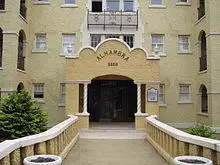 In 1838, Henry Irby purchased 202 1/2 acres surrounding the present intersection of Peachtree, Roswell, and West Paces Ferry roads from Daniel Johnson for $650. Irby subsequently established a general store and tavern at the northwest corner of the intersection.[1] The name "Buckhead" comes from a story that Irby killed a large buck deer and placed the head in a prominent location.[2][3] Prior to this, the settlement was called Irbyville.[3][4] By the late 1800s, Buckhead had become a rural vacation spot for wealthy Atlantans.[5] In the 1890s, Buckhead was rechristened Atlanta Heights but by the 1920s it was again "Buckhead".[6][7]