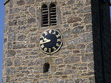 The church is made of stone quarried on the moor. The face of the clock spells out "My Dear Mother". The baptismal font is Norman, and decorated with leaves and stars. Nearby there is a viewpoint called Buckland Beacon where may also be found the 10 Commandment Stones (1282 ft).