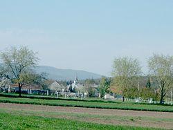 The historical center of the village consists of two rows of houses, somewhat enlarged around the middle. Between the rows flows the Arany-patak creek, running from Rohonc (Austria) toward Szombathely. The most notable landmark of the village is its 13th century church located at 8 Rohonc Street and named after the archangel Michael. Until as late as 1756 it was surrounded by a cemetery, however this has today been moved to a nearby hill. The church was used in the 17th century by Lutheran inhabitants, and later by Catholic believers. The high altar is decorated by the baroque statues of Saint John Nepomuk, Saint Joseph, Saint Anthony, and Saint Ignatius. The internal painting of the church as well as the tabernacle, were done by George Dominek.[4]