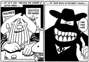 - Rank Bajin - Calton Creek's resident villain. (The name refers to "rank bad yin", "rank" being a Glaswegian term for rotten, and "yin" being Glaswegian for "one"). Bajin is the only main character in the strip who speaks with a standard middle-class English accent, while the other cartoon characters have a Glaswegian dialect, as they are all immigrants from the Calton.