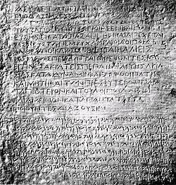 Starting in the 1930s, authors such as Will Durant suggested that Greco-Buddhist representatives of Emperor Ashoka who traveled to Syria, Egypt and Greece may have helped prepare the ground for Christian teaching.[13] Buddhism was prominent in the eastern Greek world (Greco-Buddhism) and became the official religion of the eastern Greek successor kingdoms to Alexander the Great's empire (Greco-Bactrian Kingdom (250 BC – 125 BC) and Indo-Greek Kingdom (180 BC – 10 CE)). Several prominent Greek Buddhist missionaries are known (Mahadharmaraksita and Dharmaraksita) and the Indo-Greek king Menander I converted to Buddhism, and is regarded as one of the great patrons of Buddhism. (See Milinda Panha.) Some modern historians have suggested that the pre-Christian monastic order in Egypt of the Therapeutae is possibly a deformation of the Pāli word "Theravāda",[14] a form of Buddhism, and the movement may have "almost entirely drawn (its) inspiration from the teaching and practices of Buddhist asceticism".[15] They may even have been descendants of Asoka's emissaries to the West.[16]
