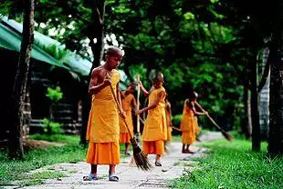 In the Vinaya (monastic regulations) used by many South Asian Buddhist sects, a man under the age of 20 cannot ordain as a bhikṣu (monk) but can ordain as a sāmaṇera. Sāmaṇeras (and sāmaṇerīs – the equivalent term for girls) keep the Ten Precepts as their code of behaviour and devote themselves to the religious life during breaks from secular schooling, or in conjunction with it if devoted to formal ordination. In other cultures and Buddhist traditions (particularly North East Asia, and those in the West that derive from these lineages), monks take different sets of vows, and follow different customary rules.