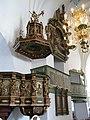 The pulpit (1692) was a gift from the first apothecary at Jens Bang's House in Aalborg, Johannes Friedenreich and his wife, Magdalena Calow. It was carved by Lauridtz Jensen.